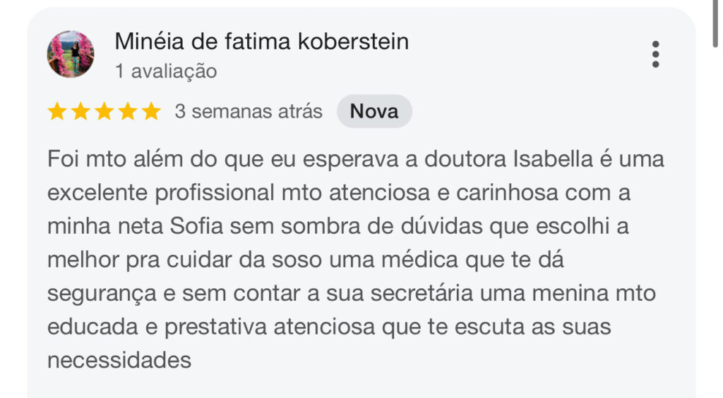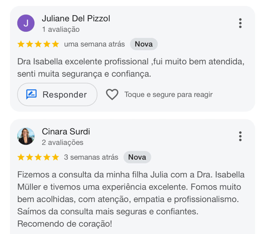 Veja algumas opiniões de pacientes que já se consultaram com a Dra Isabella: